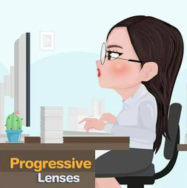 การมองจอคอมพิวเตอร์จำเป็นต้องเงยหน้าเล็กน้อยเพื่อใช้ระยะกลางของเลนส์โปรเกรสซีฟจึงจะมองได้ชัด ดังนั้นการที่เงยหน้านานๆ ติดต่อกัน